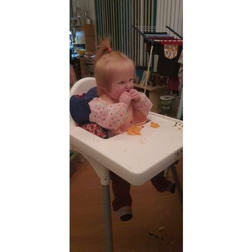 Ik pel de mandarijn en haal de witte draadjes eraf. Doe 'm doormidden en geef hem. Ze haalt zelf de partjes eraf zuigt deze vakkundig leeg en gooit de vliesjes er weer uit. Zo doet ze dat ook met druiven en tomaten. Ze is duidelijk geen fan van velletjes 🤣🤣