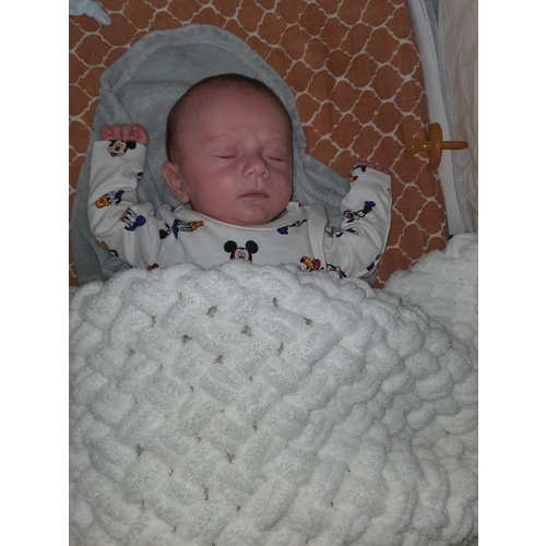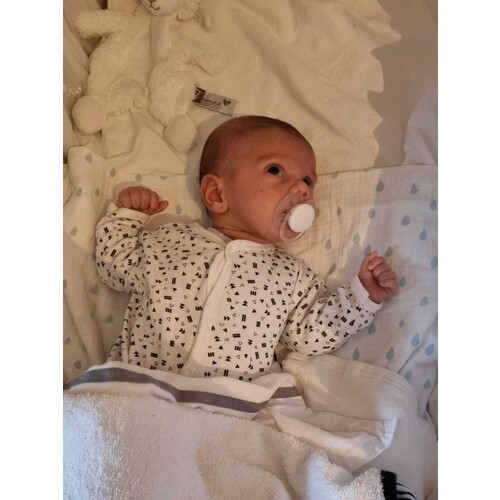 Ja hier nog 1! Ik hoef ook niet te proberen zn armen naar beneden te doen😅 na nog geen halve minuut liggen zn armen weer zo en idd inbakeren word die heel onrustig en huilerig van!