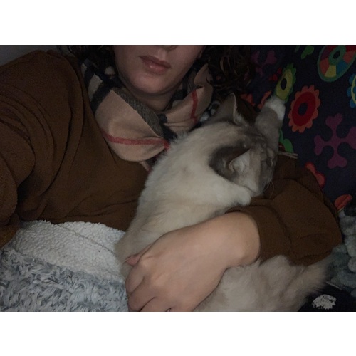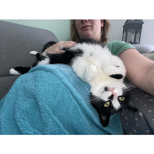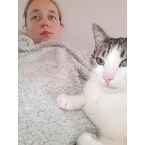 Dit is ongeveer de standaard pose van mijn kat, maar die is altijd al heel aanhankelijk. Zodra het dekentje tevoorschijn komt en mijn billen de bank raken ligt ze al bij me. Ze is wel wat voorzichtiger nu, zo lijkt het. Als ik even beweeg of ga verzitten, dan zit ze ook binnen no time bij mijn vriend op schoot. Maar ik blijf toch wel haar voorkeur en ik geniet heerlijk van het knuffelen met haar 😊❤️ ben wel heel benieuwd hoe ze op de baby zal reageren straks!