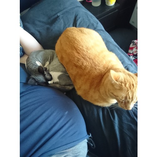 Al de hele zwangerschap ligt deze kat bij me, vandaag is hij nog aanhankelijker. Hij begon al 2 uur voor zijn "etenstijd" met extreem slijmen, en toen we zijn bakje vulde, keek hij er niet meer naar om en bleef hij maar miauwen en kopjes geven. De andere snapt er maar weinig van😂 maar die volgt me wel door het hele huis. Kan niet alleen naar de wc of hij zit erbij. Maar dat heeft hij altijd wel gehad. Verder nog geen voortekenen dat het gaat beginnen. Ben nu 36+2 dus hij mag nog een paar daagjes blijven zitten.