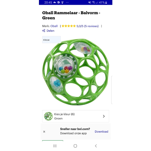 Kan hem makkelijk met z'n kleine handjes vasthouden, heeft geleerd dat het geluid maakt als hij schudt. Maar het leukste...... z'n tongetje die hij door de gaten heen doet! 🥰😄