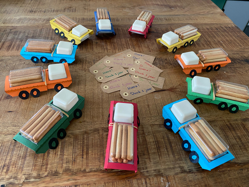 Ik ga kleine potjes play-doh doen en die dan leuk verpakken