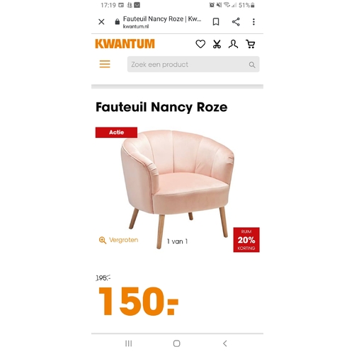 Ik wilde perse met armleuningen. Schommel was een pré. Ik vond deze. De mee ...