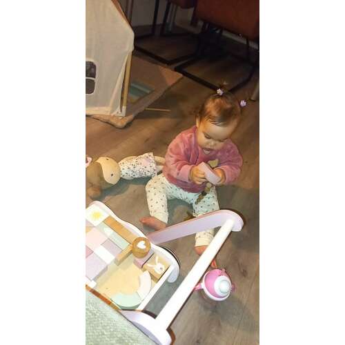 Onze dochter heeft de krullen van mama en papa. Ik doe er niks in. Ze heeft inmiddels wel een beetje een coronakapsel hihi, dus ik doe vaak staartjes maken.