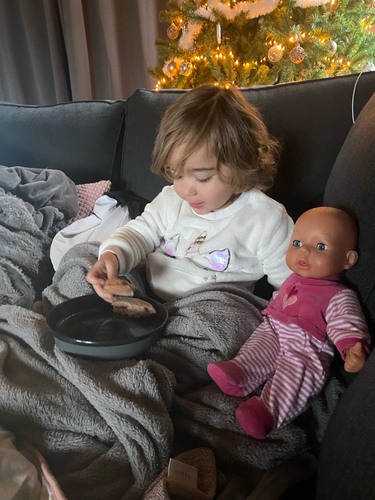 Haar pop met zacht lijfje vind ze wel echt super leuk ze doen samen hun slaapzak aan pop slaapt samen met Emma ze gaat er ook graag mee wandelen met de poppenwagen