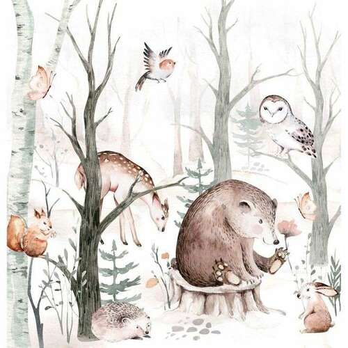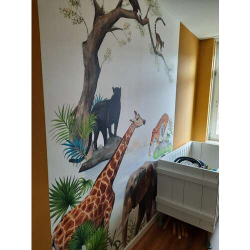 De dieren zijn 4 banen behang, gekocht bij Kwantum. Okergeel is van Praxis. ...