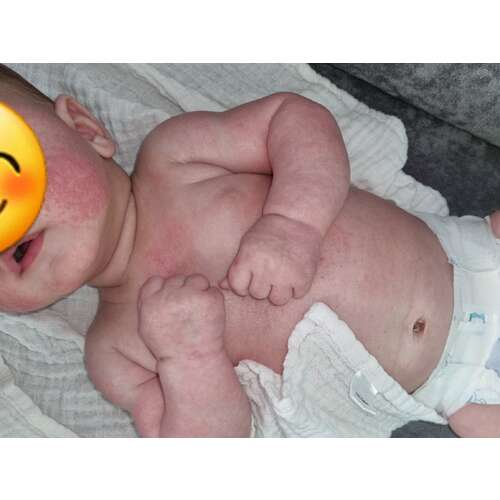Ik lees nu ook dat hij onlangs vaccinatie heeft gehad misschien allergie op 1 van de ingrediënten? Wat bij mij werkt met heftige exceem is vaseline lanette creme. In bad doen met neutrale zeep en even alles wassen met neutraal.