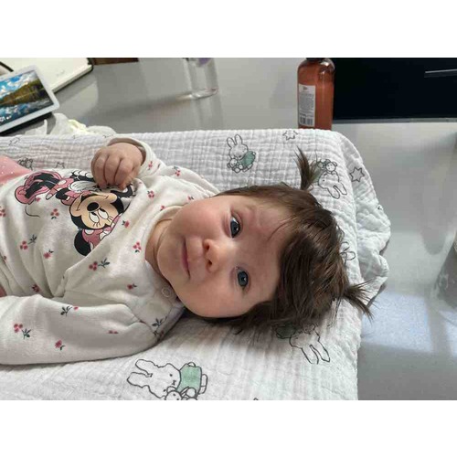 Ons meisje is ook geboren met een volle bos haar. Ik heb haar met ongeveer ...