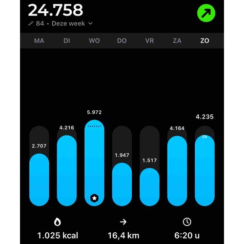 Ik zie dat mijn gemiddelde van vorige week iig 5300 stappen waren...