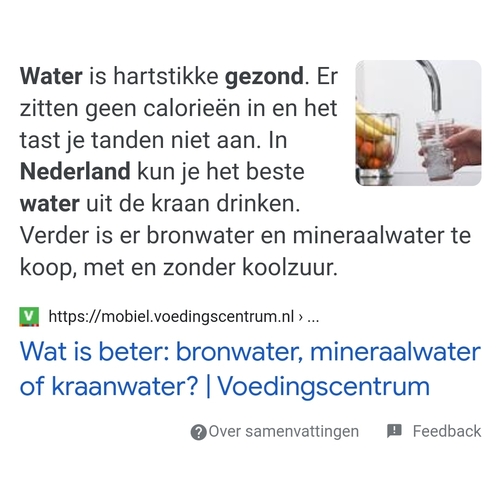 Ik drink altijd flessenwater, maar dat is gewoon gewenning. Al denk ik wel dat het altijd gezonder is dan kraanwater.