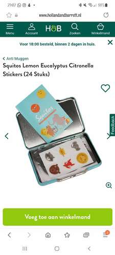 Ik heb deze voor ons zoontje op vakantie. Miss een idee? Je krijgt ze op meerdere plekken https://www.blabloom.com/nl/producten/squitos-mugwerende-stickers-24-stblik/7044/