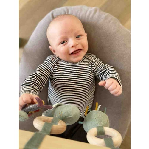 Tip: done by deer toy links. Hiermee kun je ze wat lager hangen zodat je baby er wel bij kan. Succes gegarandeerd!