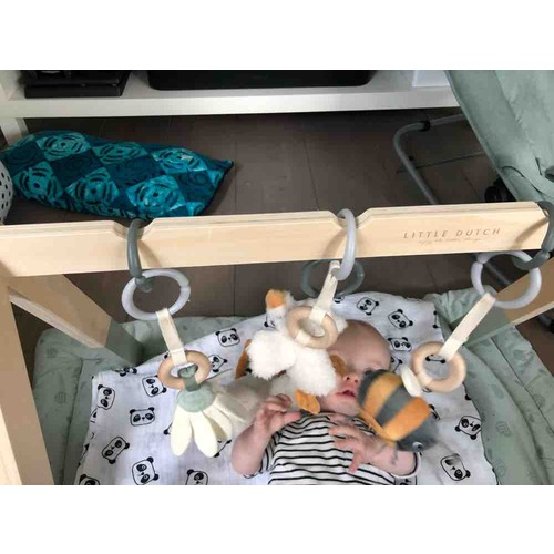 Ik zag eerder bij een topic (geen idee meer welke) dat er mensen waren die de babygym van little dutch niet fijn vonden omdat de speeltjes daar zo hoog hangen. Dit merkten wij ook!