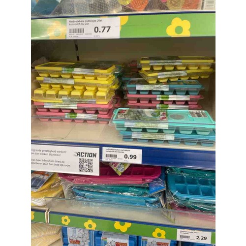 Die van de action zijn fijn inderdaad! Heb bij de big bazaar ook nog kleine bakjes gekocht voor als we bijvoorbeeld weggaan. Daar past precies zo’n ijsblokje in haha. Kan het rustig ontdooien