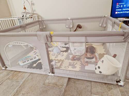 Wij hebben eentje besteld via Amazon. Het helpt idd heel goed als de baby achterover valt. Zeker een aanrader. Wij hebben zelf een zachte speelbox met een rubberen speelmat erin. Dat was voor ons toch de beste oplossing. Omdat ons zoontje heel actief is met kruipen, zitten, staan en optrekken.