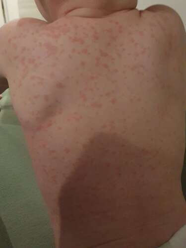 Ja van de zomer had ons zoontje de zesde ziekte. Eerst flink verkouden met koorts en na een paar dagen ineens spikkels overal. Hij heeft er toen ook een fikse oorontsteking bij gehad en dat was echt ellende. Maar van de zesde ziekte vooral wat hangerig geweest. Na een paar dagen waren de vlekjes weer weg.