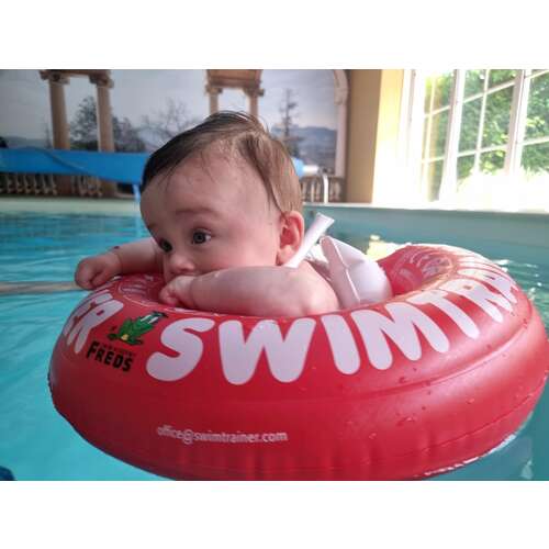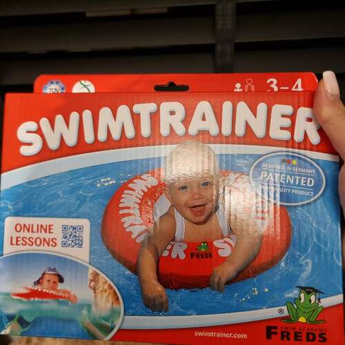 Ik heb deze besteld dit stond op internet.... De Swimtrainer is bedoeld voor baby’s vanaf drie maanden en zorgt voor een actieve, ideale zwemhouding. Het is een leerzame, speciale band en laat baby’s op een vertrouwde manier kennis maken met water en zwemmen