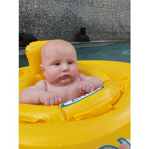 Ik heb die gele van Intex alvast gekocht (4,99 bij de Action) maar voor zover ik weet kan de kleine daar pas in vanaf een half jaar. Die andere ken ik niet.