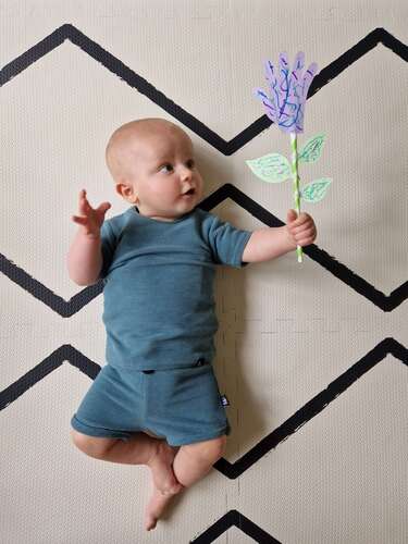 Ons zoontje gaat ook pas 3 weken naar de opvang. Wij hadden een briefje meegekregen met wat ze moesten knutselen, hier maken ze een boeket 'bloemen' van. Omdat hij ook nog maar zo kort gaat, laten we het hierbij voor dit jaar 馃槉