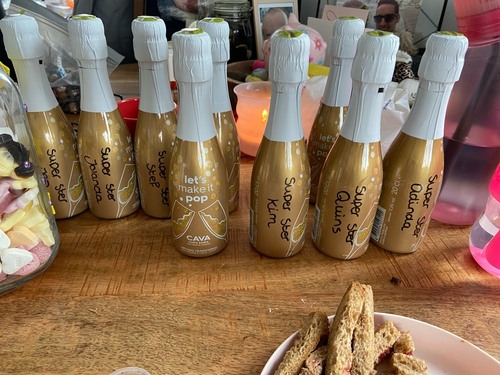 Voor alle leidsters van de meisjes zo鈥檔 flesje en voor allebei de groepen een door de oudste versierde snoep pot.