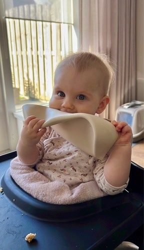 Ja de trip trap babyset en blad zijn flink duur. Ook op Vinted maar uiteraard wel de moeite waard. Wij hebben voor bij opa en oma de simpele stoel van de IKEA inclusief het opblaaskussentje voor erin en daar zit die van ons al vanaf 6,5 maand wel prima in! (Kussen is wel noodzakelijk nog.. we zijn nu op vakantie en daar hebben ze hem ook zonder kussen en dan stoppen we hem vol met handdoeken haha) Misschien kan je die kopen om te overbruggen tot die goed in jullie eigen stoel zit?
