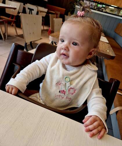 Mijn kleine meid van nu 5 maanden heeft haar haren nog niet lang en dik genoeg helaas!