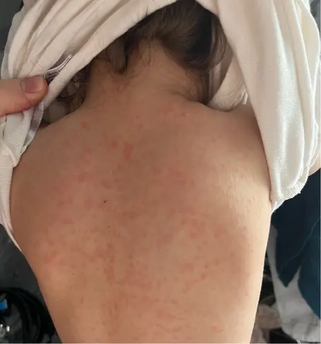 Misschien vijfde of zesde ziekte? Dat gaat gepaard met vlekjes en koorts.