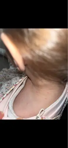 Waterpokken zijn toch meer blaasjes? Ze heeft ook geen jeuk verder. Vandaag heeft ze nog meer vlekken erbij gekregen. Deze foto is wat duidelijker