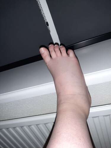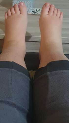Mijn voeten en enkels zijn ook gezwollen aan het eind van de dag. Dit trekt gedurende de nacht vanzelf weg; alhoewel er soms wel wat vocht in mijn enkels achterblijft. Ik probeer veel te drinken, leg mijn voeten enigzins omhoog tijdens het rusten en slapen en neem om de dag een voetenbad met meerzout. Verder doe ik er niks aan, aangezien het geen zeer doet, ik geen hoge bloeddruk of andere indicatie heb dat er iets loos is en het erbij hoort.