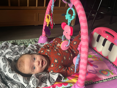 Wij hebben er één gekregen op de baby shower. Ik vind het wel leuk. Ze ligt er dagelijks onder. In het begin kon ze nog niks maar nu begint ze al te grijpen. Ik leg haar zo neer dat als ze trappelt met de voetjes dat ze tegen de bogen aan tikt zodat het beweegt. Soms wordt ze helemaal wild daar van, van zichzelf haha 😂