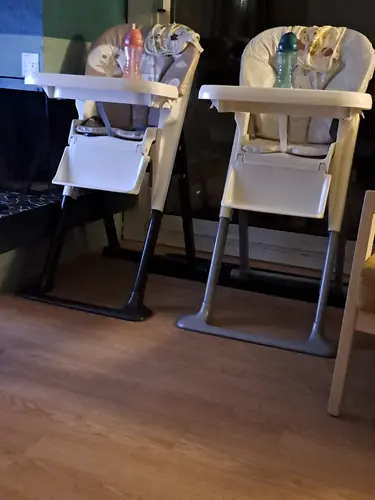 Ik ben er nu toevallig, in het huisje hebben ze deze, prima te doen. In restaurants hebben ze de ikea stoeltjes, zijn nog iets ruim voor ze