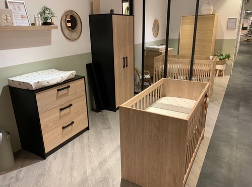 Wij hebben babykamer Nova gekozen met een ledikant van 70x140. We waren in de zoveelste showroom aan het kijken en zeiden bij deze tegelijkertijd, dit moet hem zijn! Inclusief kast en commode, precies als in de showroom.
