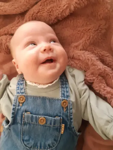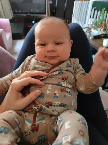 Sinds een week reageert hij echt met lachen. Hij is morgen 7 weken 馃グ