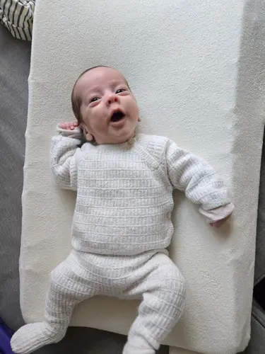 Hier was de eerste lach met ongeveer 4,5e week. Ze keek me met grote ogen aan, ik zei wat tegen haar en meteen kwam daar echt een giga lach. Ooooh ik smolt helemaal, kon wel janken 馃槀鉂わ笍