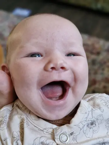 Reflexmatig lachen in slaap was al vanaf de 1e week