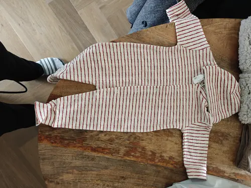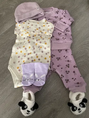 Ik heb een leuk pakje gekocht in de maand dat ik was uitgerekend van mijn 1e zwangerschap die een miskraam werd. Alleen is hey een maatje 50 en best kort en wordt deze baby groot geschat. We gaan nog zien of ze er wel in kan 🤭