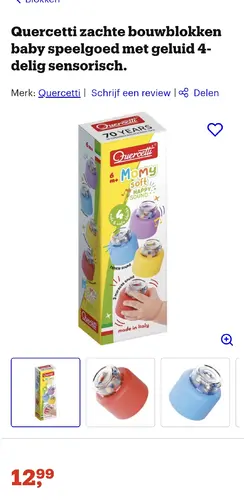 Bij ons zijn ze grote fan van alles met lawaai en lichtjes. We hebben zo een stapeltoren met ringen op zo’n basis en onderin zit er een klein belletje. Zoontje haalt de ringen er continu van en rammelt er dan op los.