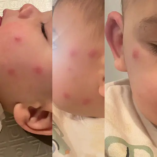 Ringworm? Zijn er huisdieren die hem in zijn gezichtje kunnen likken? Wat overdracht van deze schimmel heeft kunnen gegeven. In dat geval anti- schimmel cr猫me.