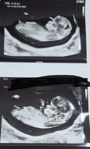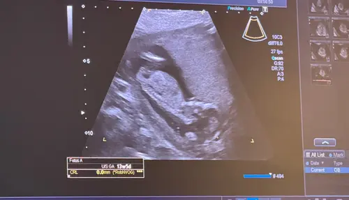 Ha! Ik ben 10+4 weken, is hier al iets op te zien? Ik snap niet zo goed hoe ik hiernaar moeten kijken. Wat denken jullie? 🥰