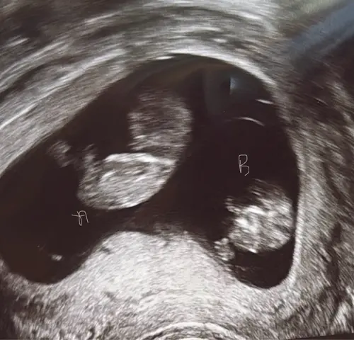 Ik ben ook al een tijdje aan het kijken naar de Nub Theorie methode en o m g … ik kom er gewoon niet uit 🫣 hier zijn jullie een echo foto van mijn tweelingen 🤭 enig idee wat jullie met Nub kunnen zien? Ben benieuwd 🤗 veel succes voor alle aanstaande moeders/ouders 🤍💛