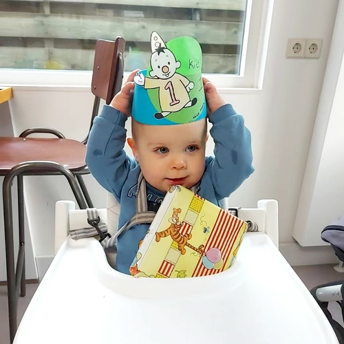 Kdv had cadeautje en muts langs gebracht馃槉. 28 december 1 jaar geworden