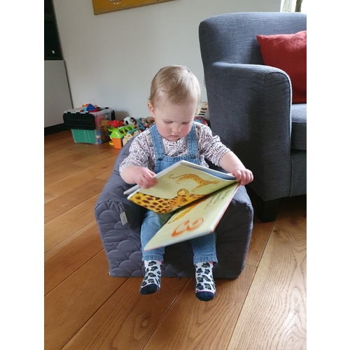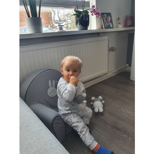 Mijn zoontje heeft er 1 van nijntje. Sinds een paar dagen heeft hij door dat hij er op moet gaan zitten. Voorheen was het alleen maar slepen met de stoel door de woonkamer馃槅