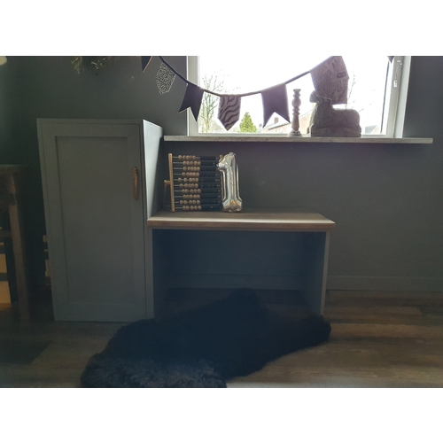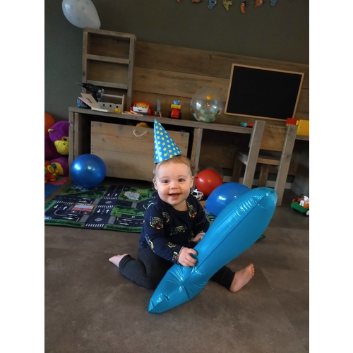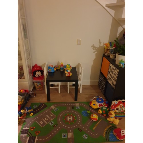 Een leuke kast gekocht met lades waar hij zelf zijn speelgoed uit kan pakken.. leuk werkleed en tafeltje met stoeltjes neergezet voor later.