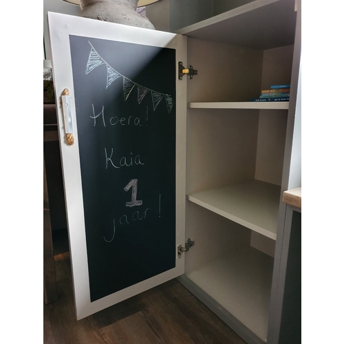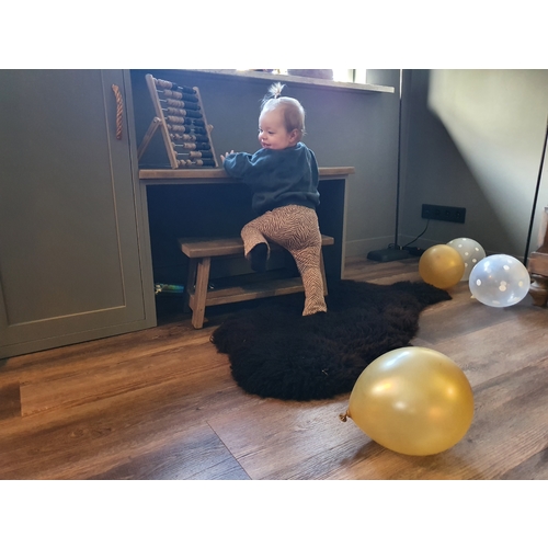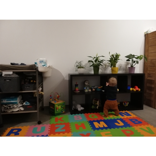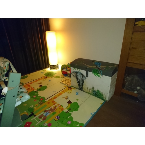 En dan hebben we nog een 2e hands keukentje van de Ikea waar ze veel mee speelt. Ze sleept het speelgoed mee door de hele kamer en het keukentje is echt een aanrader. In de toekomst wil ik ook een kast met tafeltje, maar daar is ze nu nog te klein voor. De speelgoedkist hebben we als kraamkado gekregen.