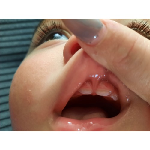 Mijn beide zoontjes hebben dit. Ik kwam erachter doordat mijn jongste (nu 13 mnd) moeite met drinken had, ik gaf borstvoeding en hij kon moeilijk het vacuüm houden. Zijn tongriempje was te kort, maar ook het lipbandje (vergelijkbaar met jouw foto). Heb toen ook bij mijn oudste zoontje gekeken om te vergelijken en kwam er toen achter dat hij ook een kort lipbandje had. Door omstandigheden kon ik pas terecht bij de tongriemkliniek toen mijn jongste een half jaar was (cb die het niet ernstig vond omdat hij genoeg aankwam, corona...). Ze kijken of het nodig is en behandelen dan ook gelijk. Bij de jongste zijn beide gekliefd. Bij de oudste (toen 2) die duidelijk een spleetje tussen zijn voortanden had waar het lipbandje tussen zat, vonden ze het niet nodig. En moet zeggen dat het bij hem nu ook bijna verdwenen is, zijn voortanden groeien tegen elkaar aan. Wel heeft hij nog altijd hekel aan het poetsen van zijn voortanden, omdat dit altijd zeer deed omdat je tegen zijn lipbandje aan kwam (electrische tandenborstel was bij ons hiervoor de oplossing).