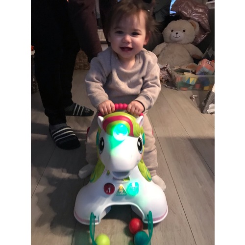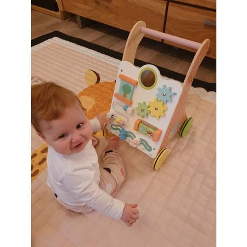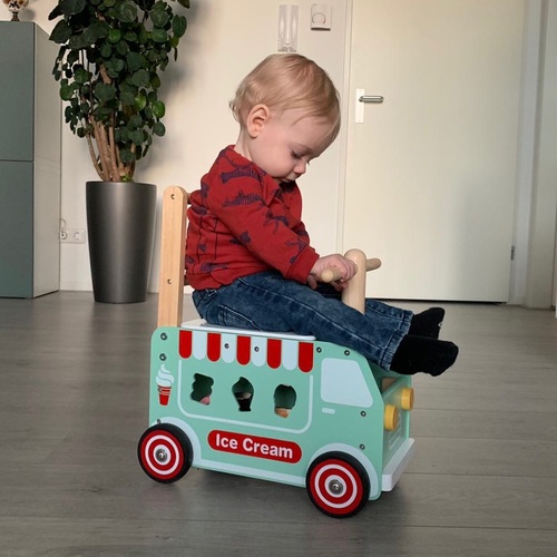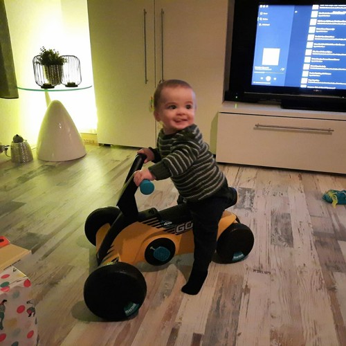 Hij bevalt erg goed. Vooral door de rubberen wielen rijdt hij goed op het laminaat. Alleen rijdt hij wel snel vooruit vind ik, waardoor onze zoon er nog niet zelfstandig mee kan lopen.