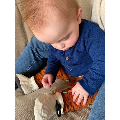 Voor binnen heb ik handgemaakte lerenslofjes van SKO - Babyshoes & more (FB). Je kan deze helemaal naar eigen smaak/ maat samenstellen. Zie foto de slofjes die ik laatst maar eigen smaak liet maken voor onze kinderen. Voor buiten (op de fiets oid) heb ik wollen slofjes van cosilana met anti slip.
