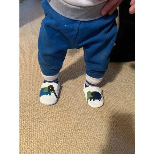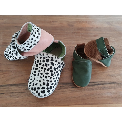 Ik heb leren slofjes gekocht van Babypatta. Heb er heel blij mee! Blijven goed zitten bij m’n zoontje die normaal binnen 5 min z’n sokken kwijt is. En ze hebben heel veel leuke designs.
