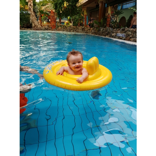 Wij hadden een babyfloat mee. Daar kunnen ze voor een lange tijd in.. we hadden ook een eigen opblaasbare zwembadje mee genomen. Dit omdat wij bij deze "spa-zwembad" tijden hadden om te gaan zwemmen.. hierin hadden we dan beetje water in gedaan en zo kon hij ook op t droge badderen.. alleen wij deden t ook op de babyfloat zetten zodat hij in zn badje in t grote bad kon 😅