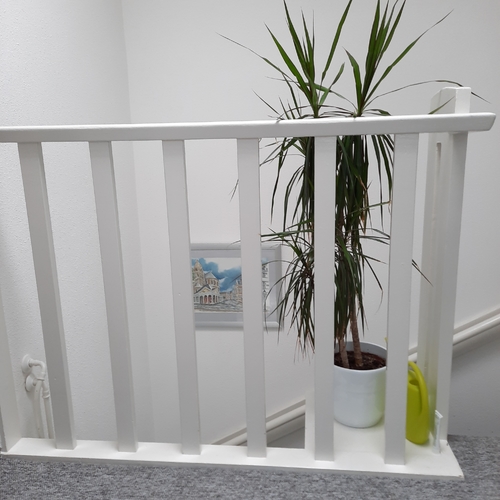 Misschien een doorzichtige plastic plaat ertegen aan bevestigen. Of van die bamboematjes er tussendoor weven馃槉 succes ik moet eind van de maand ook 3 verdiepingen gaan voorzien van traphekjes.